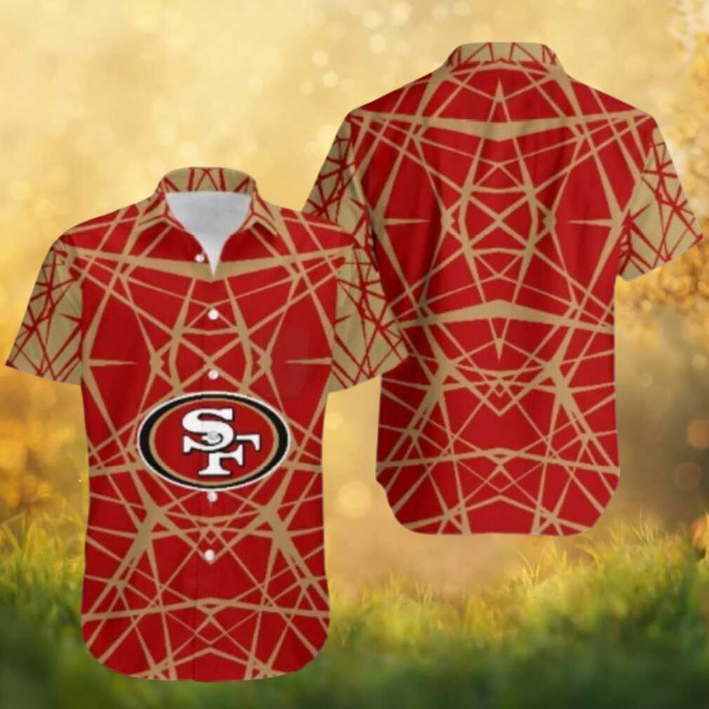 Elegant gold geometric lattice patterns on a rich red background give this 49ers Hawaiian shirt a luxurious, high-fashion feel. Bold team colors and intricate design make it a premium fan piece that looks as great off the field as on game day.