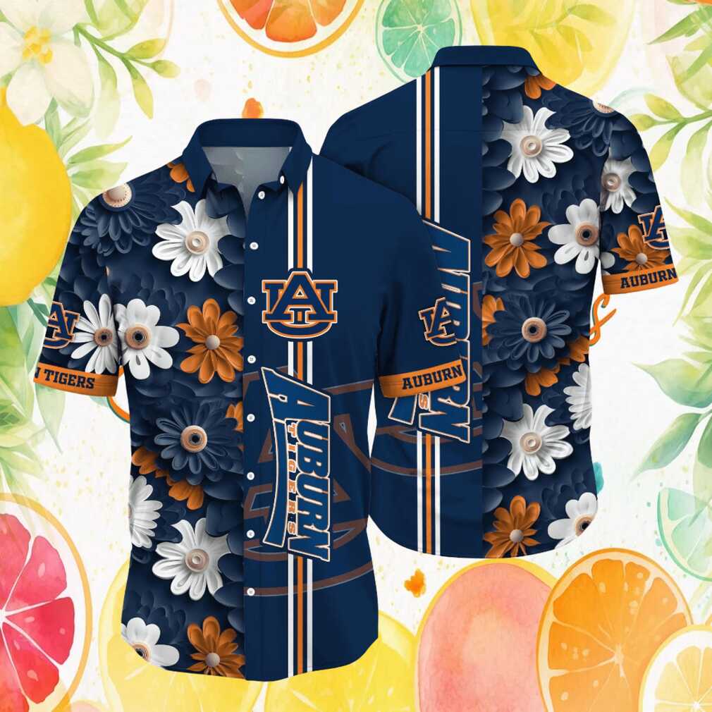 Auburn Tigers NCAA Bloom Pattern Sporty Hawaiian Shirt NavyOrange