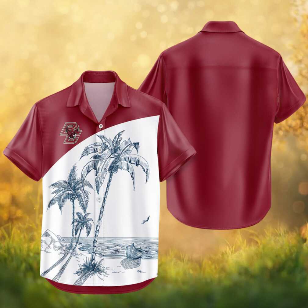Boston College Eagles NCAA Maroon Shoreline Palm Hawaiian Shirt