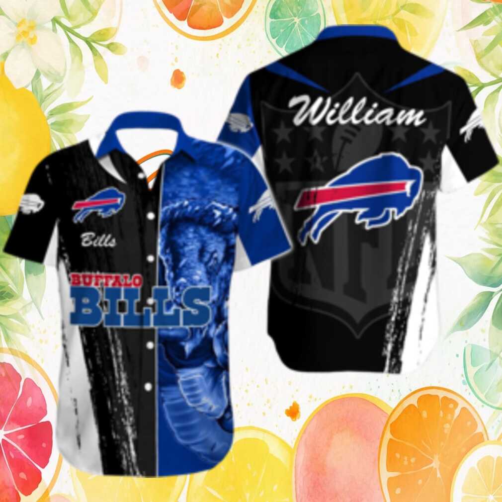 Buffalo Bills Custom Name Black & Blue Buffalo Portrait Hawaiian Shirt