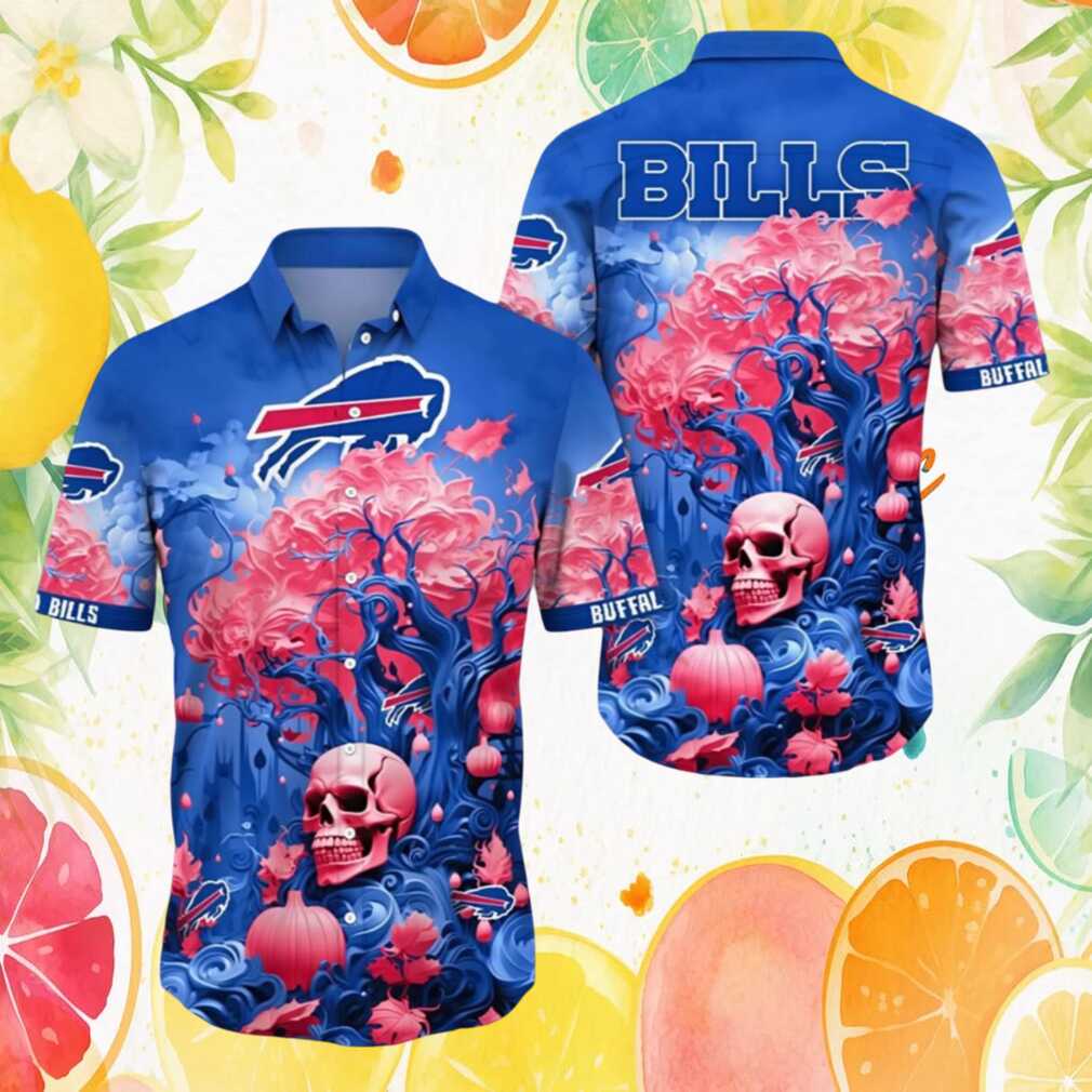 Buffalo Bills Halloween Nightmare Skull & Pumpkin Floral Hawaiian Shirt