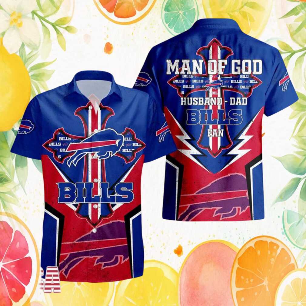 Buffalo Bills Man of God Husband Dad Cross Hawaiian Shirt