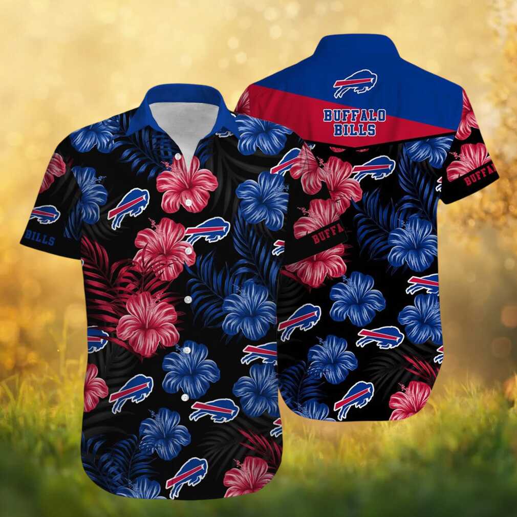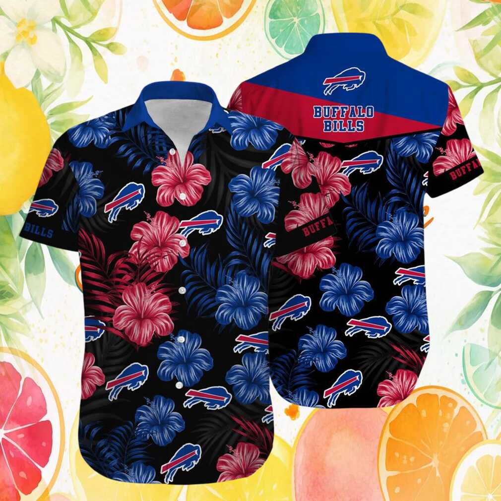 Buffalo Bills Midnight Hibiscus Tropical Floral Black & Blue Hawaiian Shirt