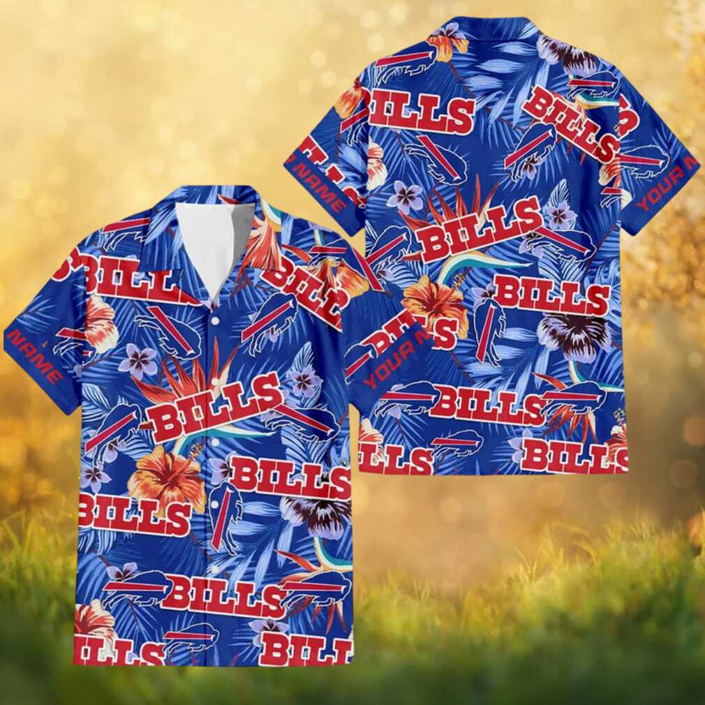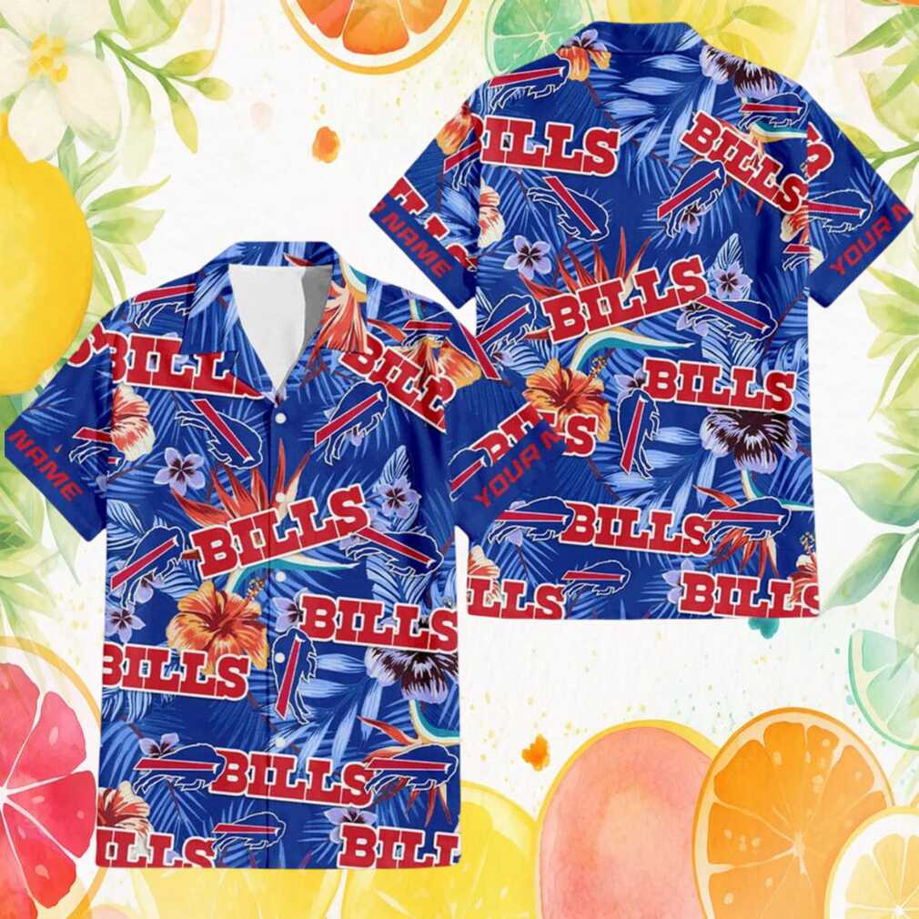 Make it yours with this personalized Buffalo Bills royal blue tropical floral Hawaiian shirt. Add your name or number to this vibrant design in Bills colors for a one-of-a-kind fan gift that’s as personal as your team loyalty.