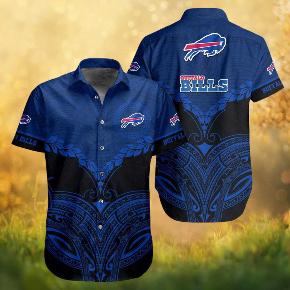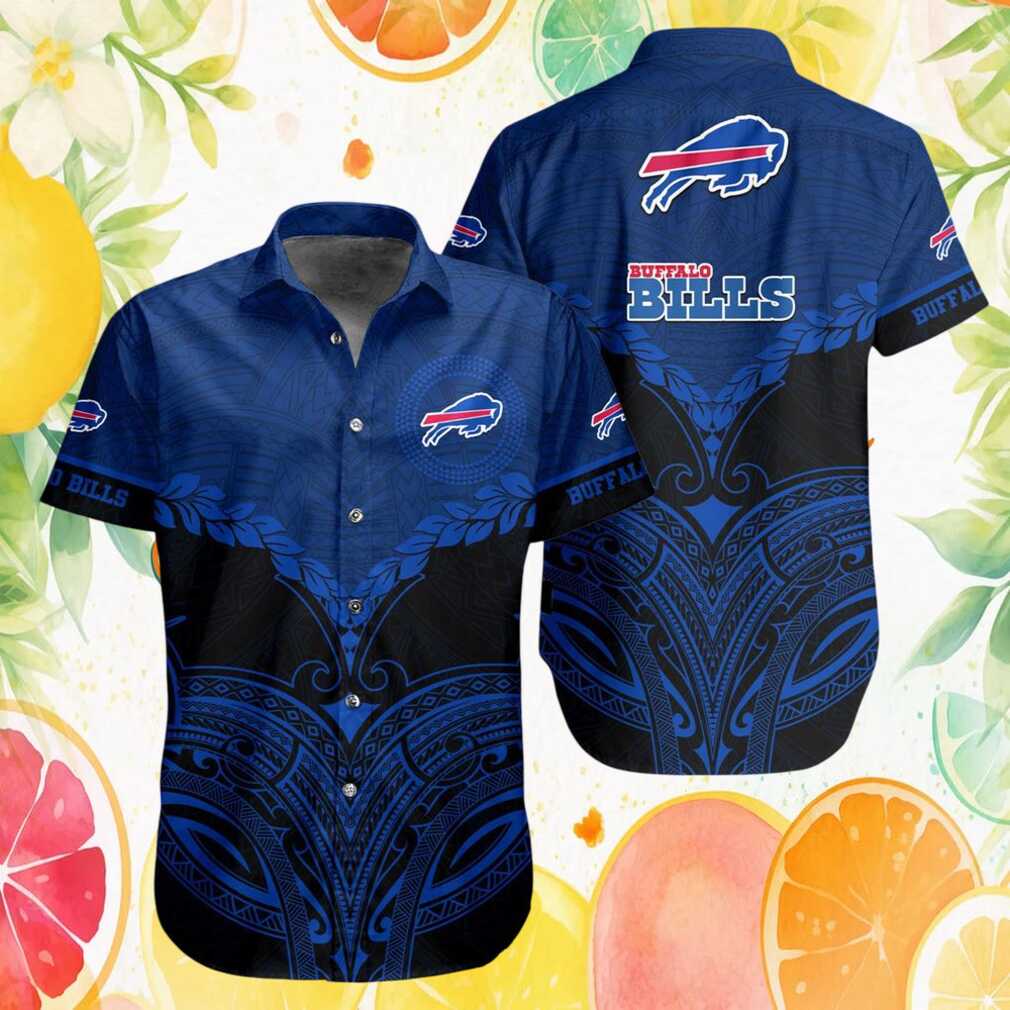 Buffalo Bills Polynesian Tribal Tattoo Pattern Blue & Black Hawaiian Shirt