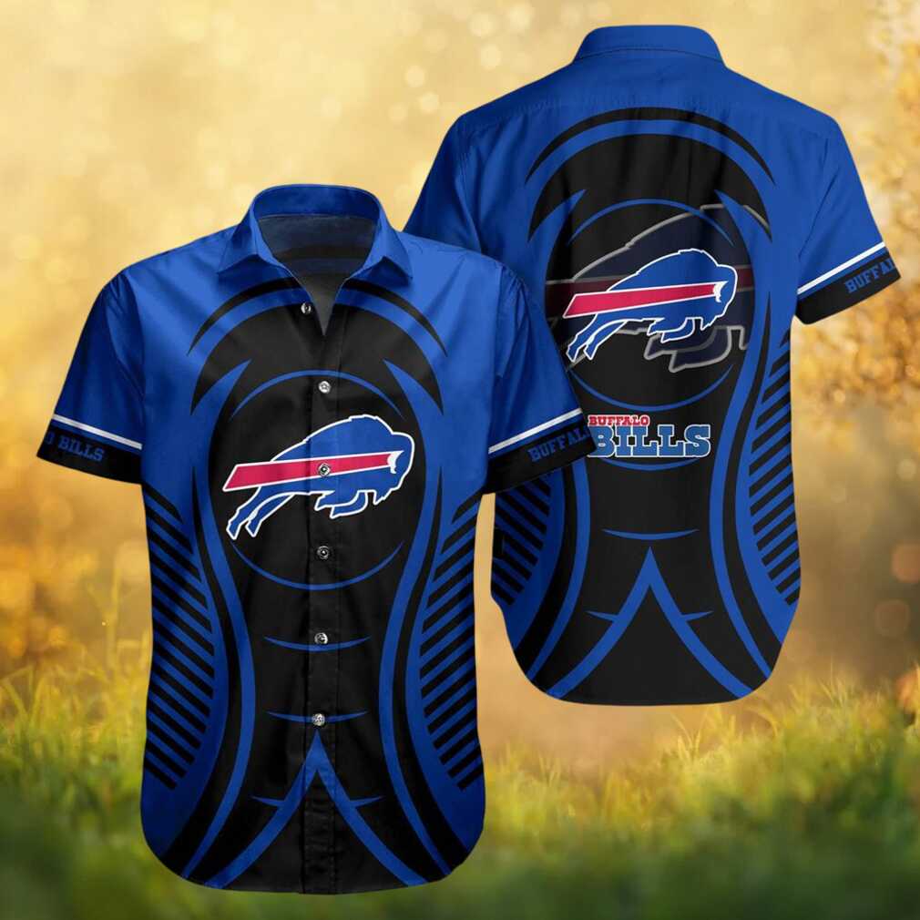 Buffalo Bills Tribal Wave Athletic Print Button Down Hawaiian Shirt