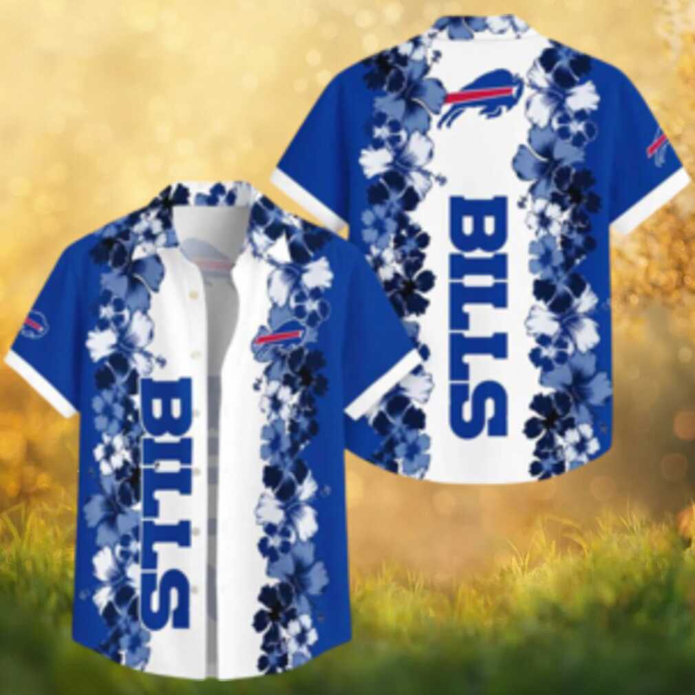Buffalo Bills Tropical Hibiscus Pattern Blue & White Hawaiian Shirt