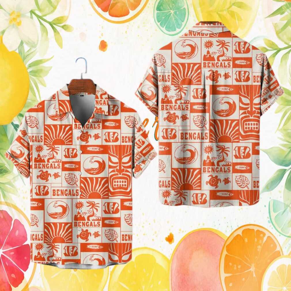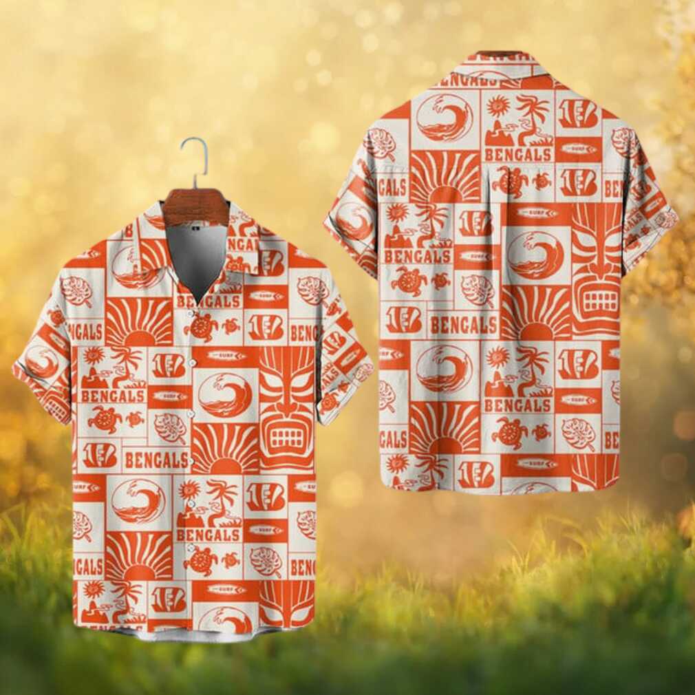 Cincinnati Bengals NFL Orange Tiki Hawaiian Hawaiian Shirt Summer Holiday Beach Hawaiian Shirt
