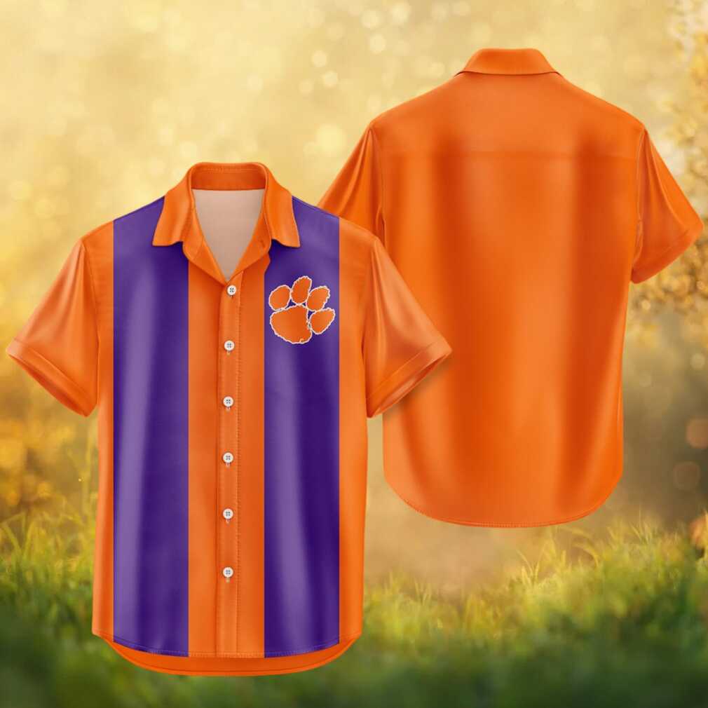 Clemson Tigers NCAA Striped Orange and Purple Button Down Hawaiian Shirt