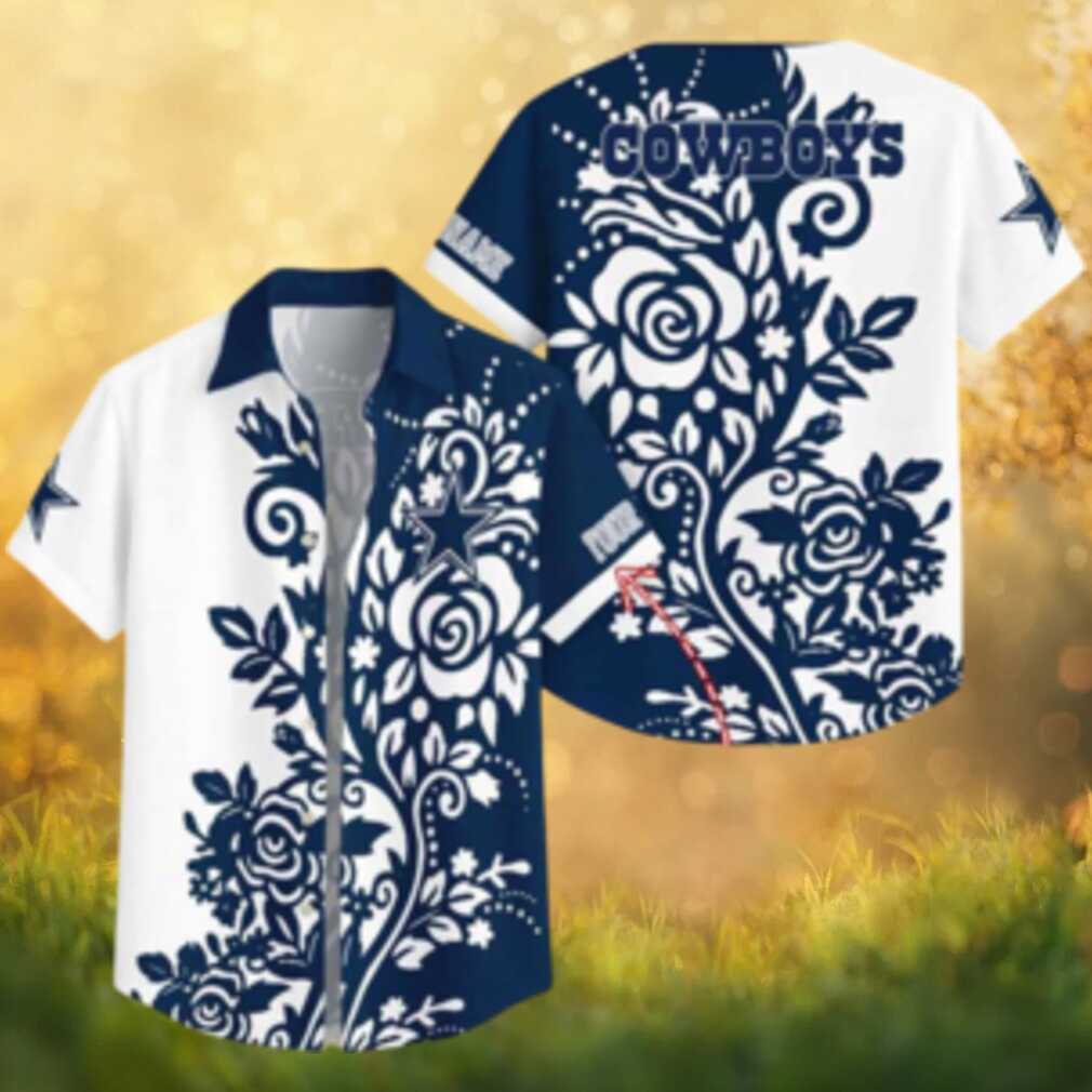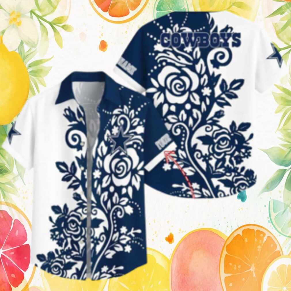 Custom Name Dallas Cowboys Floral Rose Navy & White Hawaiian Shirt Personalized NFL Gift