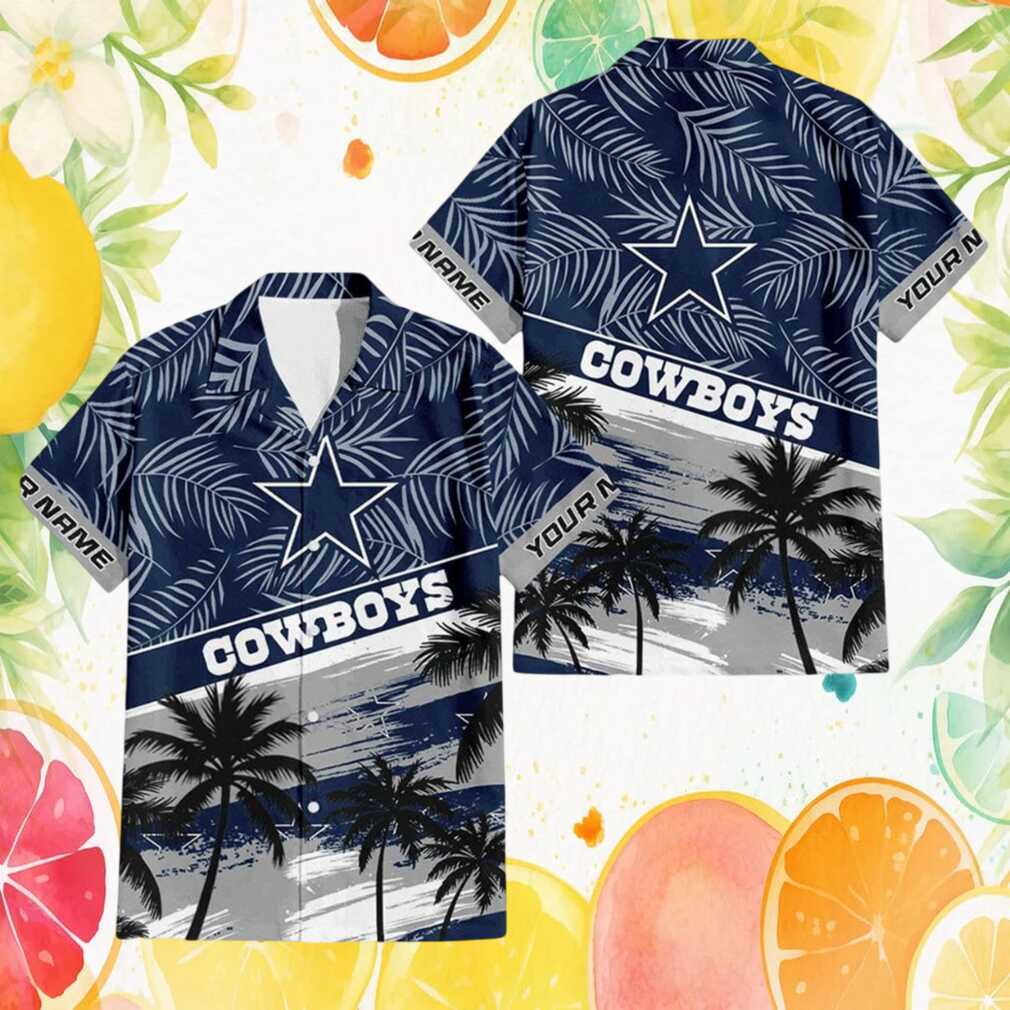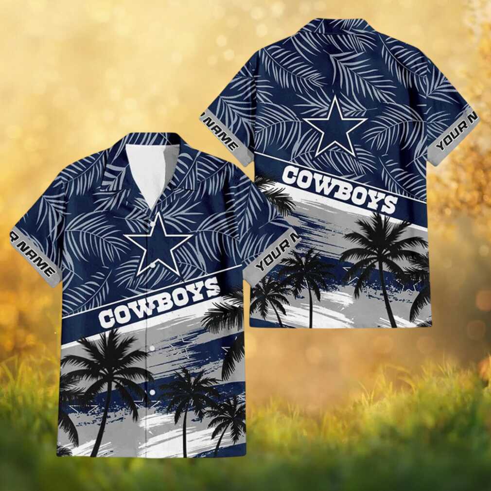 Rep your beloved Dallas Cowboys with this stunning NFL Hawaiian shirt featuring lush tropical palm tree scenery inspired by the team’s iconic navy and silver color scheme. Crafted with a lightweight, breathable fabric, this button-down shirt is designed for ultimate comfort whether you’re at a tailgate, the beach, or a summer barbecue. The all-over sublimation print ensures vibrant, fade-resistant colors wash after wash. Personalize it with your own name for a one-of-a-kind fan gift that stands out in the crowd.