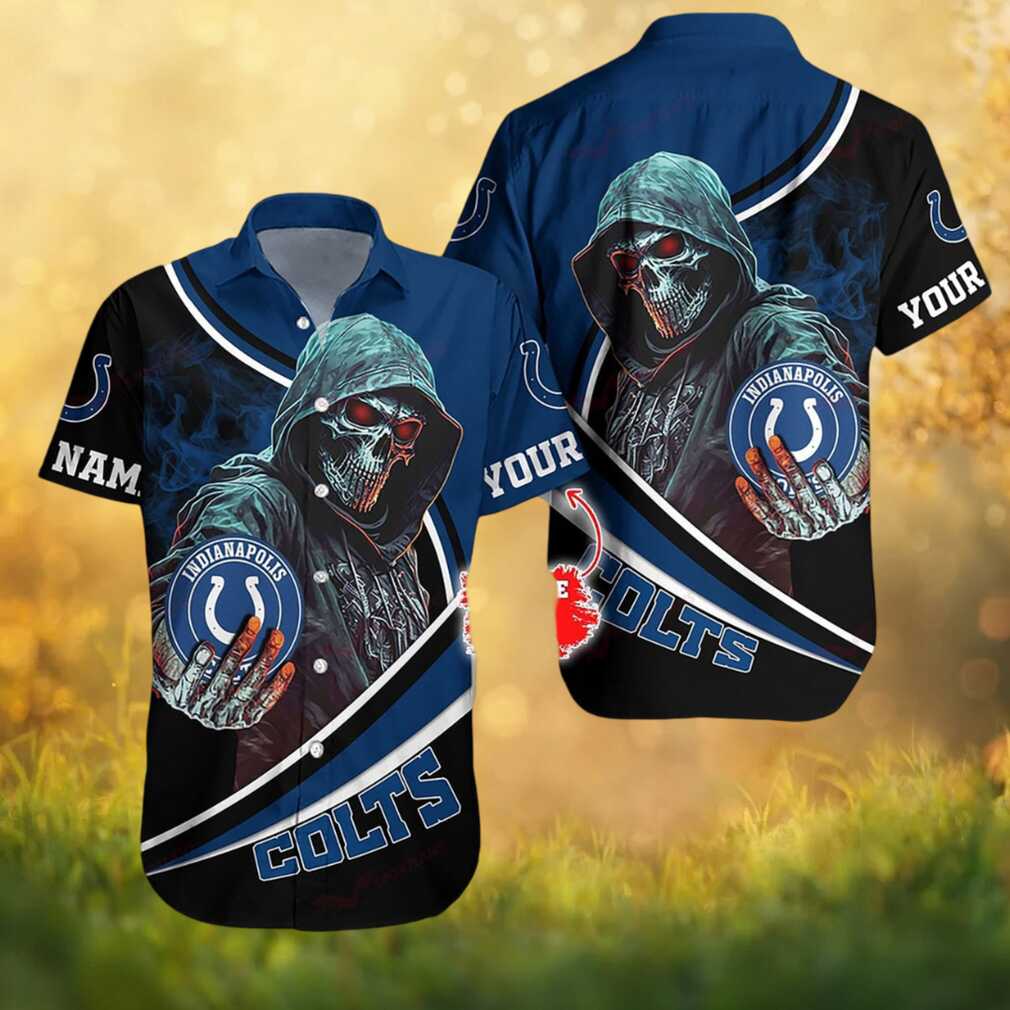 Custom Name Indianapolis Colts Grim Reaper Hooded Skull Hawaiian Shirt