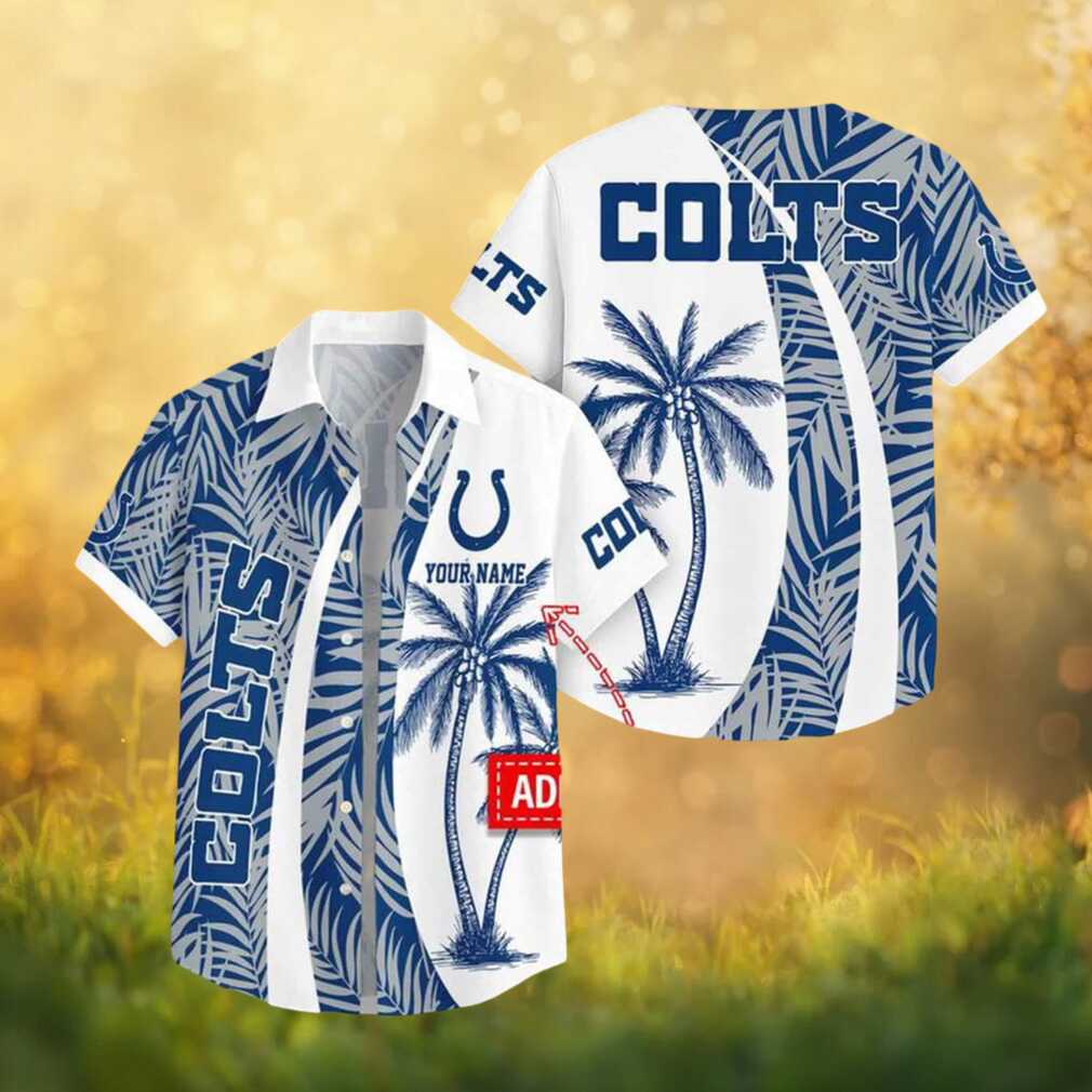 Escape to paradise with this tropical Indianapolis Colts Hawaiian shirt. Lush palm trees, ocean waves, and vibrant tropical scenery are beautifully combined with team colors and logos for the ultimate beach-ready fan look. Add your own name or number to make it truly one of a kind. Made from lightweight, breathable fabric with vivid, fade-resistant printing. Available in sizes S–5XL for a comfortable, relaxed fit perfect for warm-weather wear.