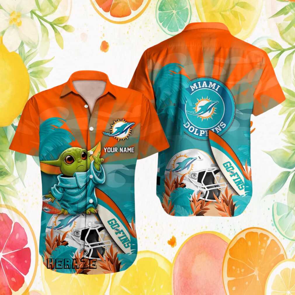 Custom Name Miami Dolphins Grogu Baby Yoda Summer Tropical NFL Hawaiian Shirt