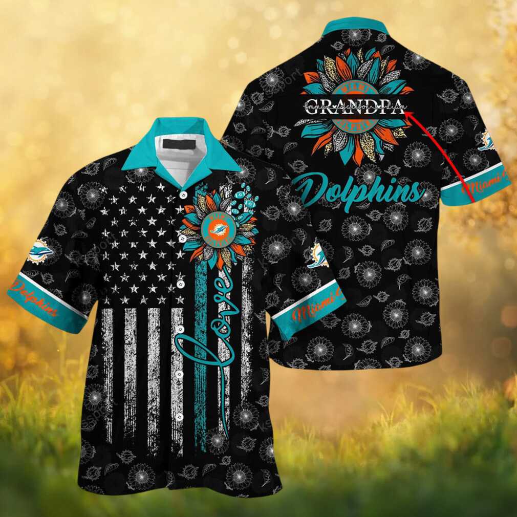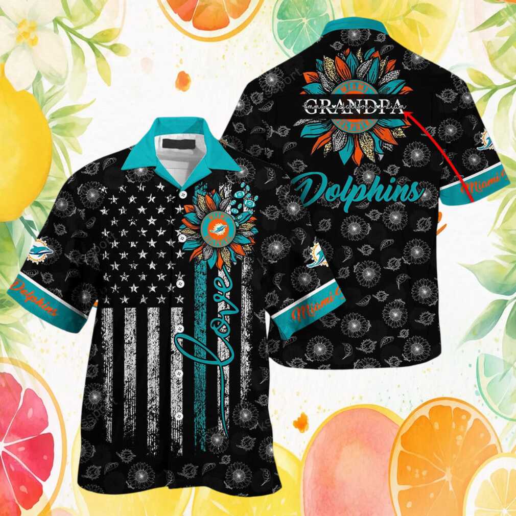 Custom Name Miami Dolphins Sunflower & American Flag NFL Hawaiian Shirt