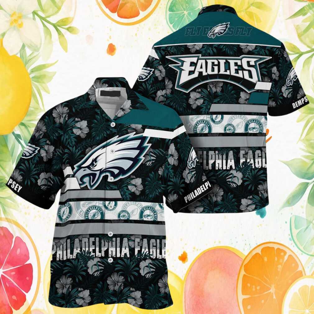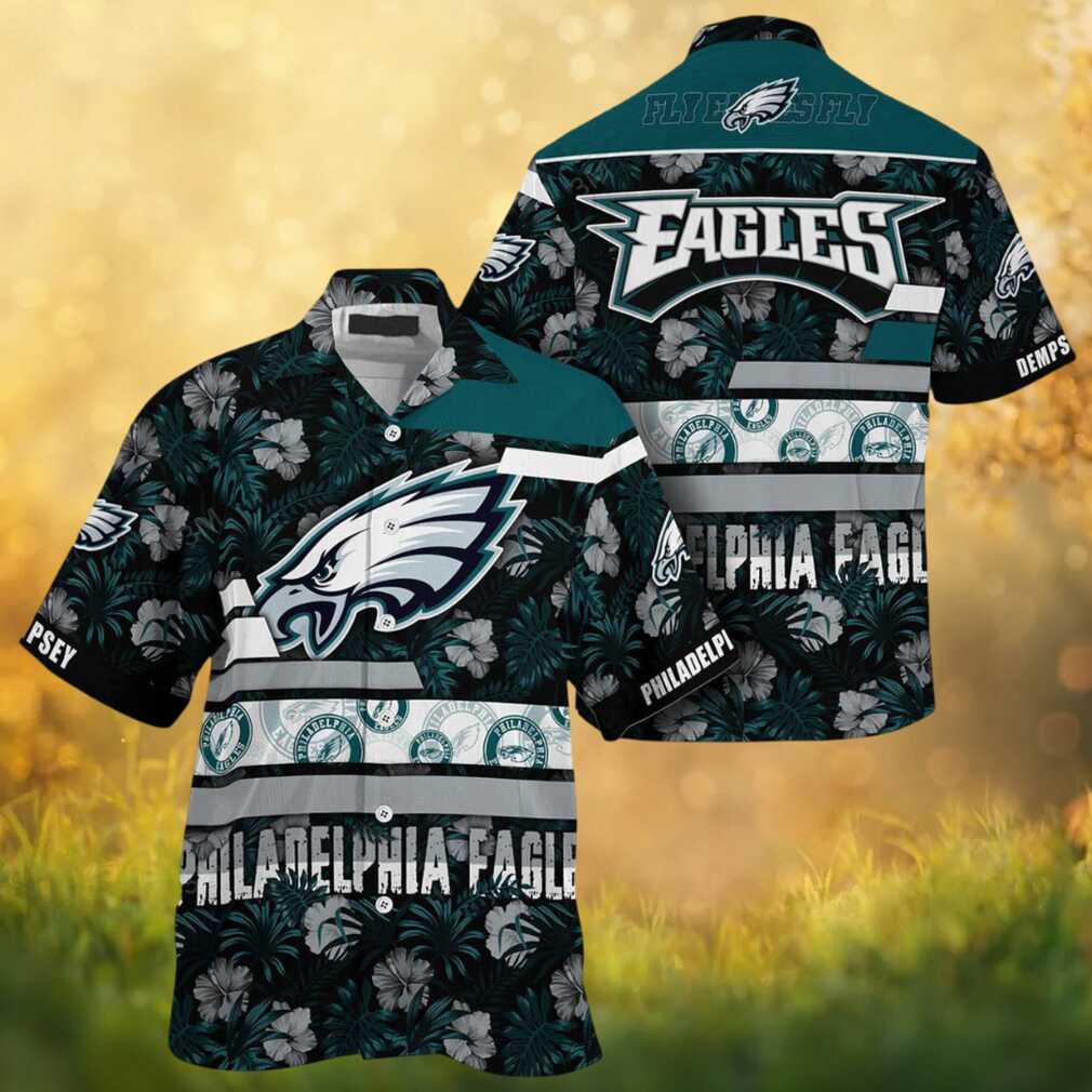 Rep your beloved Philadelphia Eagles with this stunning NFL Hawaiian shirt featuring colorful floral all-over pattern inspired by the team’s iconic midnight green and silver color scheme. Crafted with a lightweight, breathable fabric, this button-down shirt is designed for ultimate comfort whether you’re at a tailgate, the beach, or a summer barbecue. The all-over sublimation print ensures vibrant, fade-resistant colors wash after wash. Personalize it with your own name for a one-of-a-kind fan gift that stands out in the crowd.