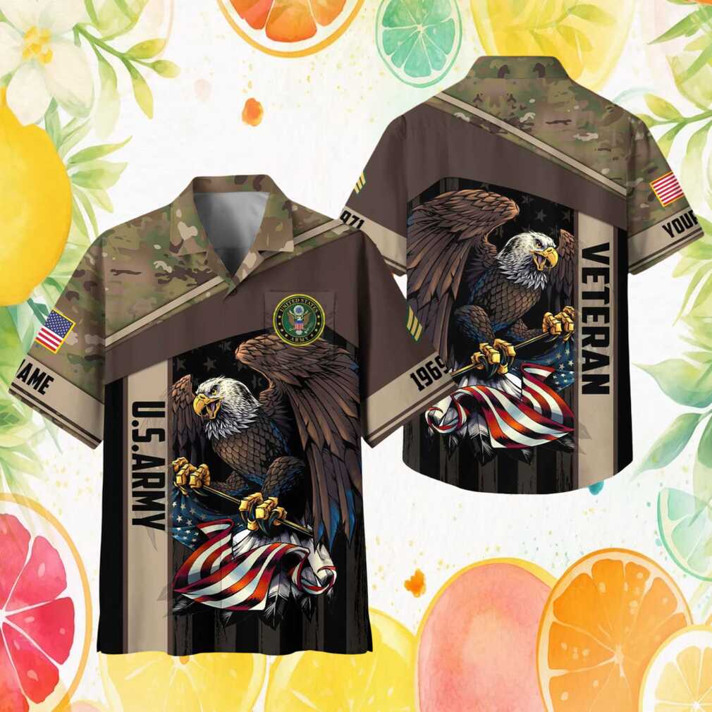 Custom U.S. Army Veteran Eagle Flag Camo Personalized Hawaiian Shirt
