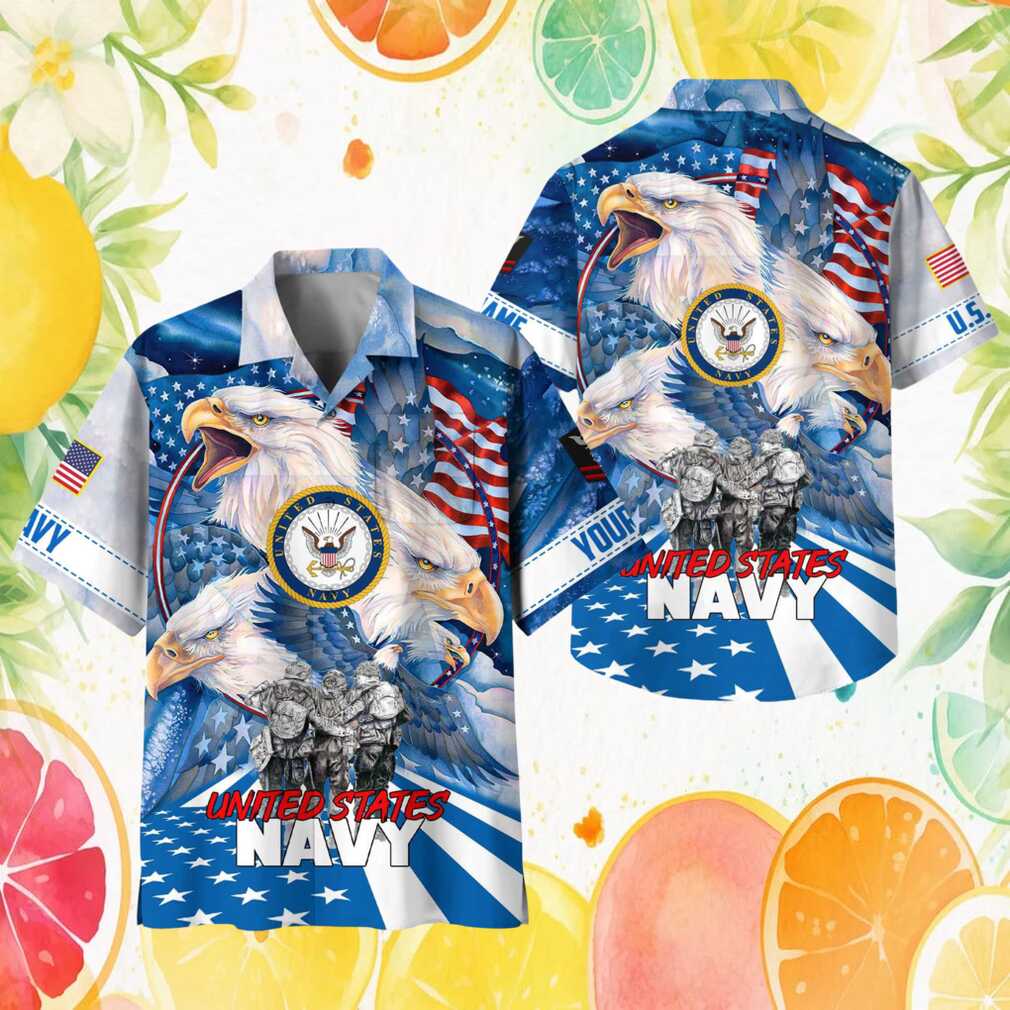 Custom United States Navy Veteran Patriot Eagle Graphic Hawaiian Shirt