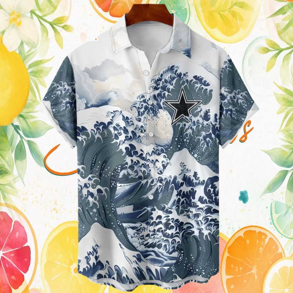 Rep your beloved Dallas Cowboys with this stunning NFL Hawaiian shirt featuring iconic Great Wave artistic reimagining inspired by the team’s iconic navy and silver color scheme. Crafted with a lightweight, breathable fabric, this button-down shirt is designed for ultimate comfort whether you’re at a tailgate, the beach, or a summer barbecue. The all-over sublimation print ensures vibrant, fade-resistant colors wash after wash.