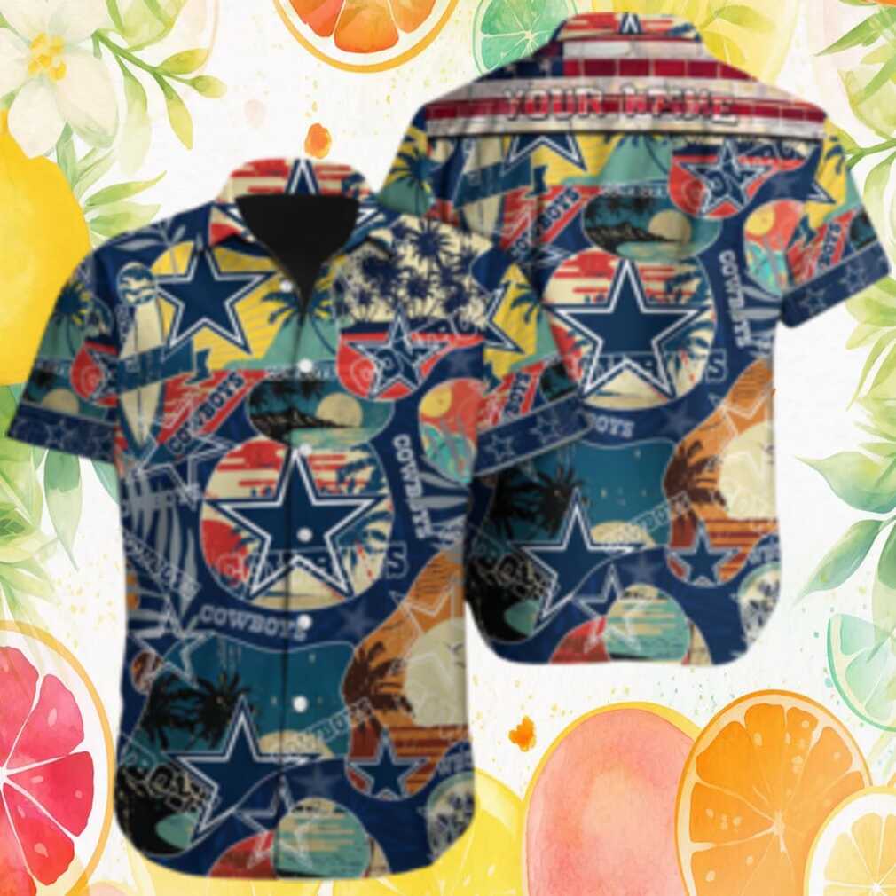 Dallas Cowboys Custom Name Vintage Multi Logo Collage NFL Hawaiian Shirt
