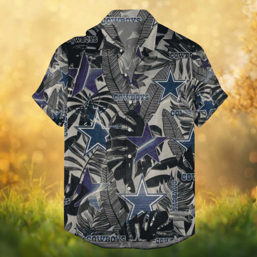 Dallas Cowboys Grey & Black Monotone Tropical NFL Hawaiian Shirt