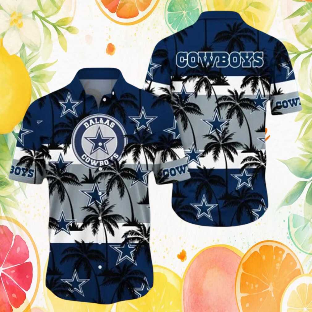 Rep your beloved Dallas Cowboys with this stunning NFL Hawaiian shirt featuring lush tropical palm tree scenery inspired by the team’s iconic navy and silver color scheme. Crafted with a lightweight, breathable fabric, this button-down shirt is designed for ultimate comfort whether you’re at a tailgate, the beach, or a summer barbecue. The all-over sublimation print ensures vibrant, fade-resistant colors wash after wash.