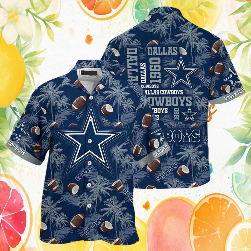 Dallas Cowboys Navy Tropical Palm Tree & Football Print Hawaiian Shirt
