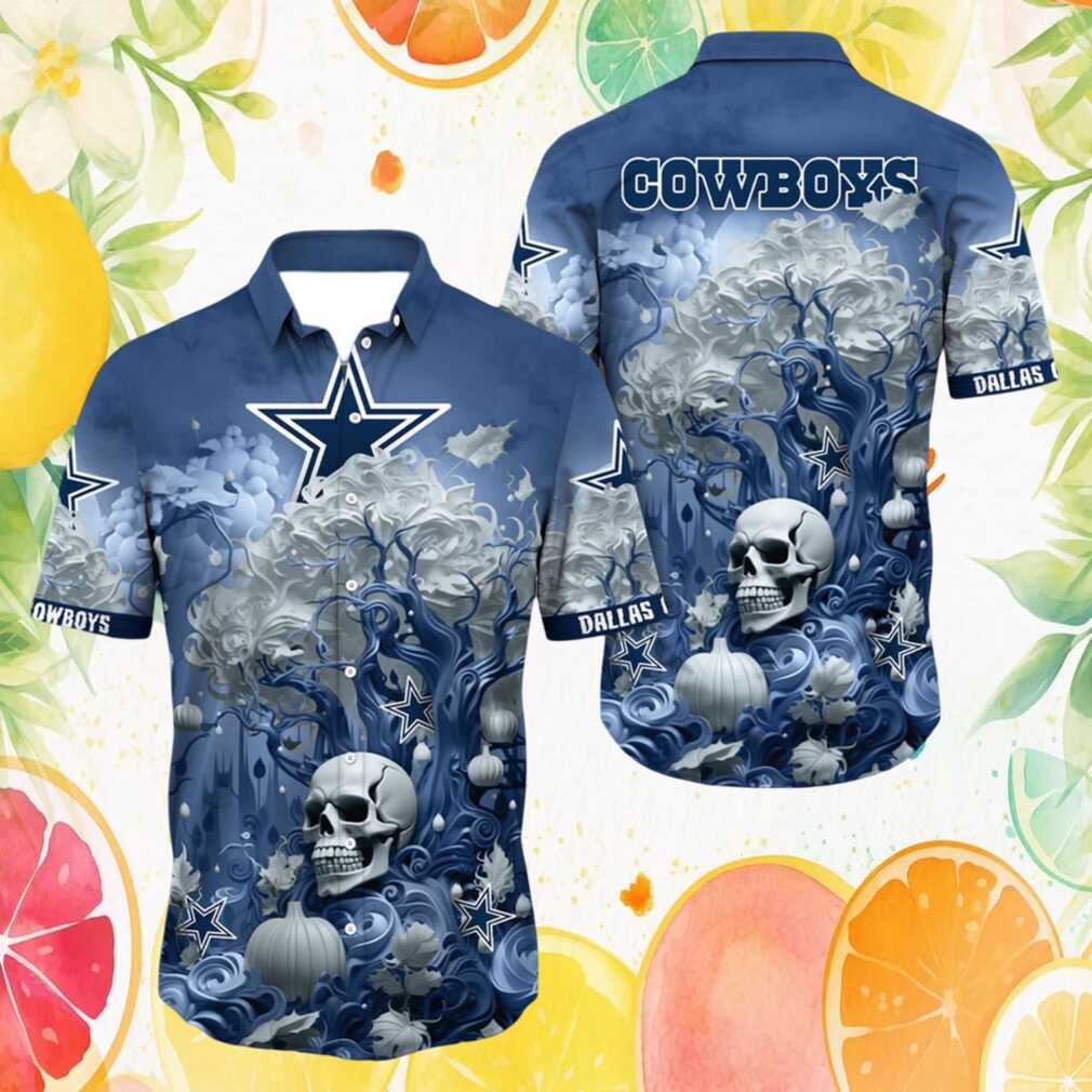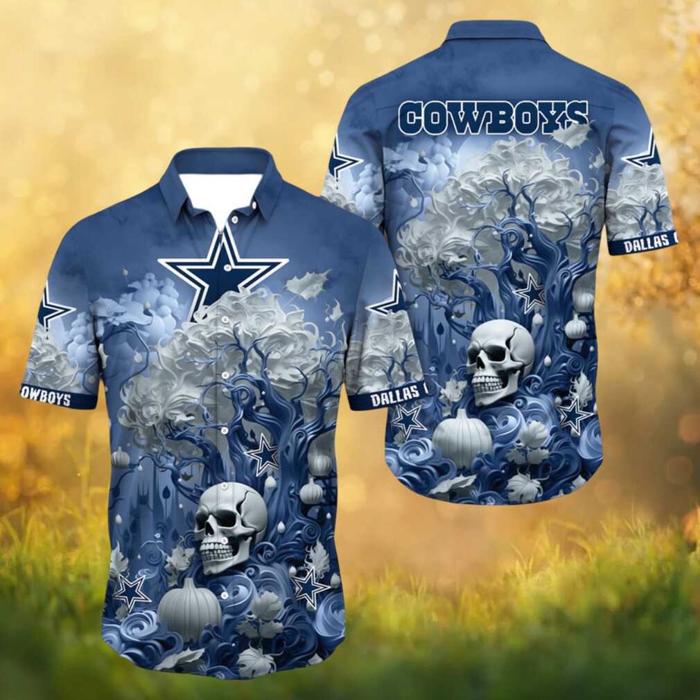 Rep your beloved Dallas Cowboys with this stunning NFL Hawaiian shirt featuring edgy skull graphic artwork inspired by the team’s iconic navy and silver color scheme. Crafted with a lightweight, breathable fabric, this button-down shirt is designed for ultimate comfort whether you’re at a tailgate, the beach, or a summer barbecue. The all-over sublimation print ensures vibrant, fade-resistant colors wash after wash.