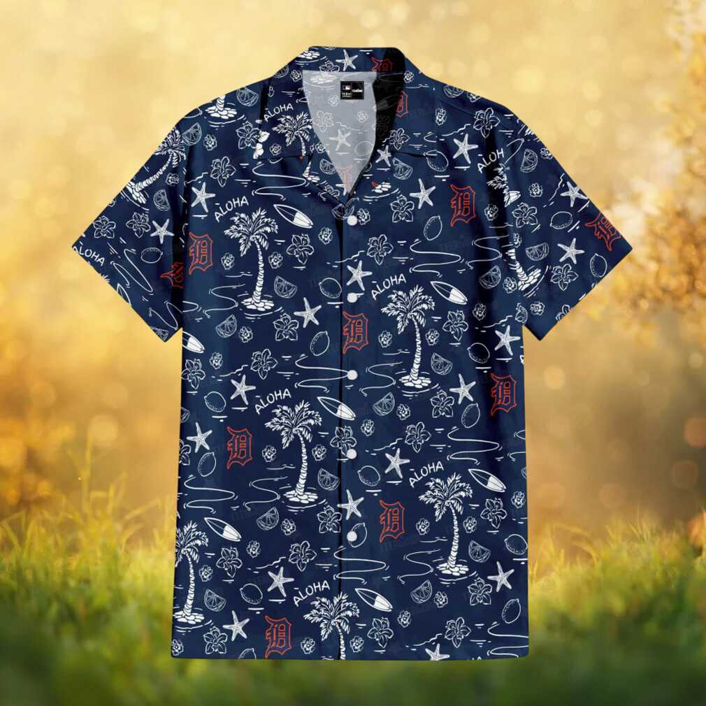 Detroit Tigers Navy Blue Floral Hawaiian Shirt