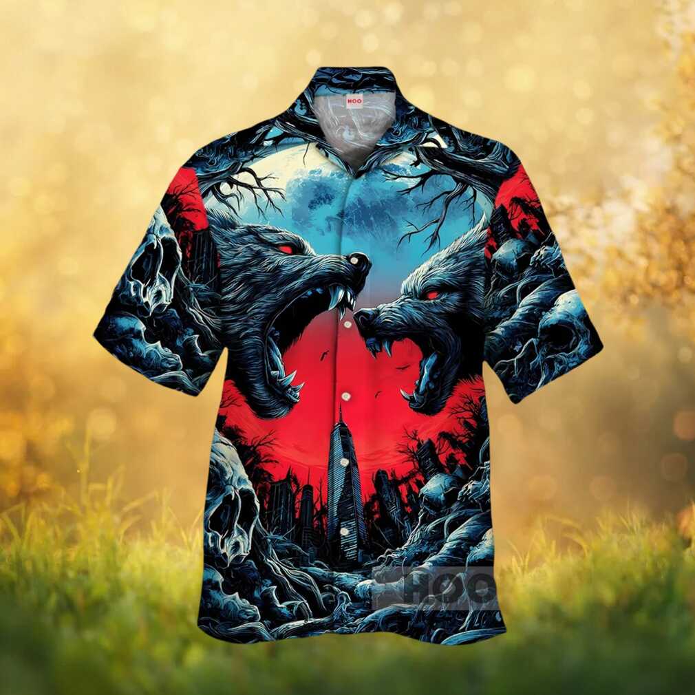 ()Gothic Werewolf Battle Apocalypse Cityscape Graphic Hawaiian Shirt, Treat yourself or make a great gift for your loved ones