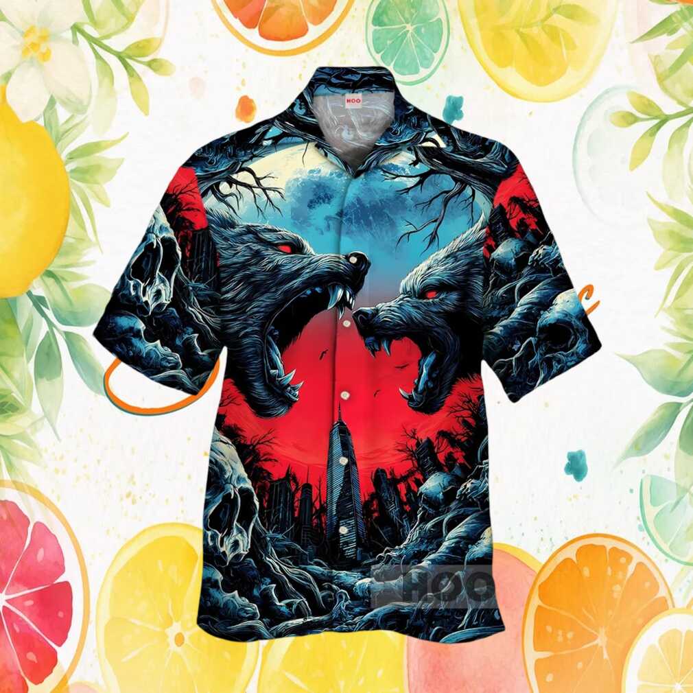Gothic Werewolf Battle Apocalypse Cityscape Graphic Hawaiian Shirt