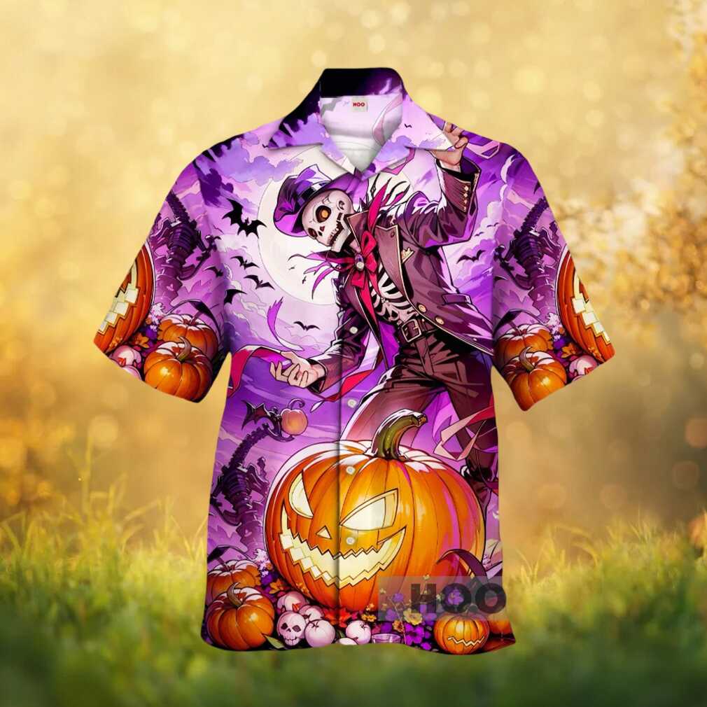 ()Halloween Jack O Lantern & Skeleton Dandy Purple Hawaiian Shirt, Treat yourself or make a great gift for your loved ones