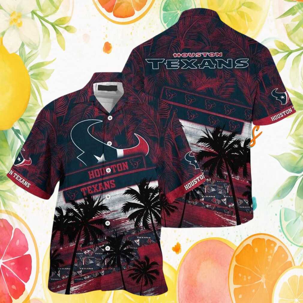 Houston Texans Sunset Palm Tree Red and Navy Hawaiian Shirt