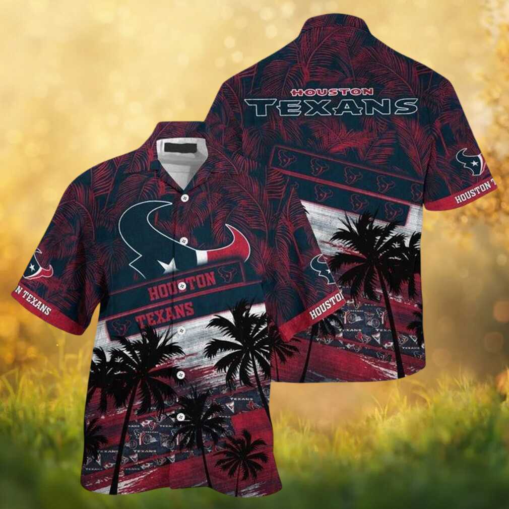 Rep your beloved Houston Texans with this stunning NFL Hawaiian shirt featuring lush tropical palm tree scenery inspired by the team’s iconic red and navy color scheme. Crafted with a lightweight, breathable fabric, this button-down shirt is designed for ultimate comfort whether you’re at a tailgate, the beach, or a summer barbecue. The all-over sublimation print ensures vibrant, fade-resistant colors wash after wash.