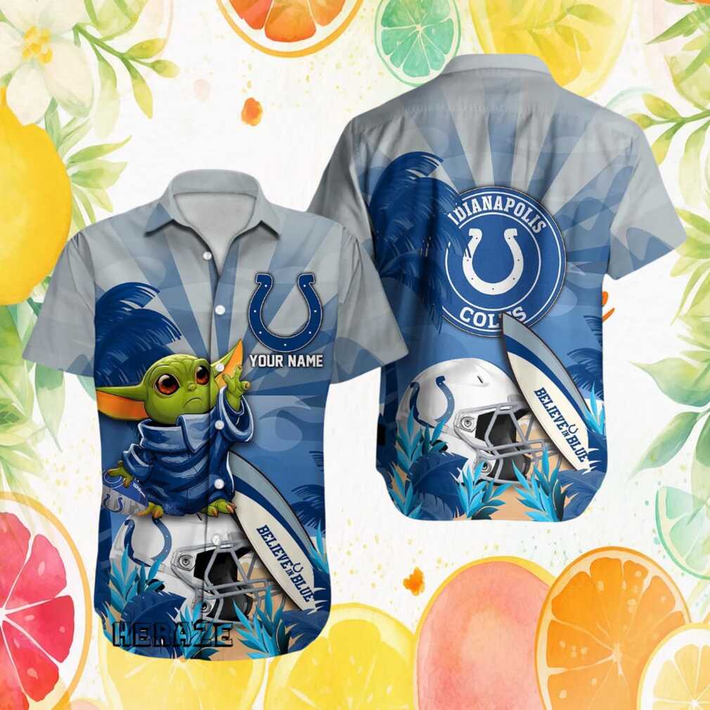 Indianapolis Colts Believe In Blue Custom Name Grogu Baby Yoda Hawaiian Shirt