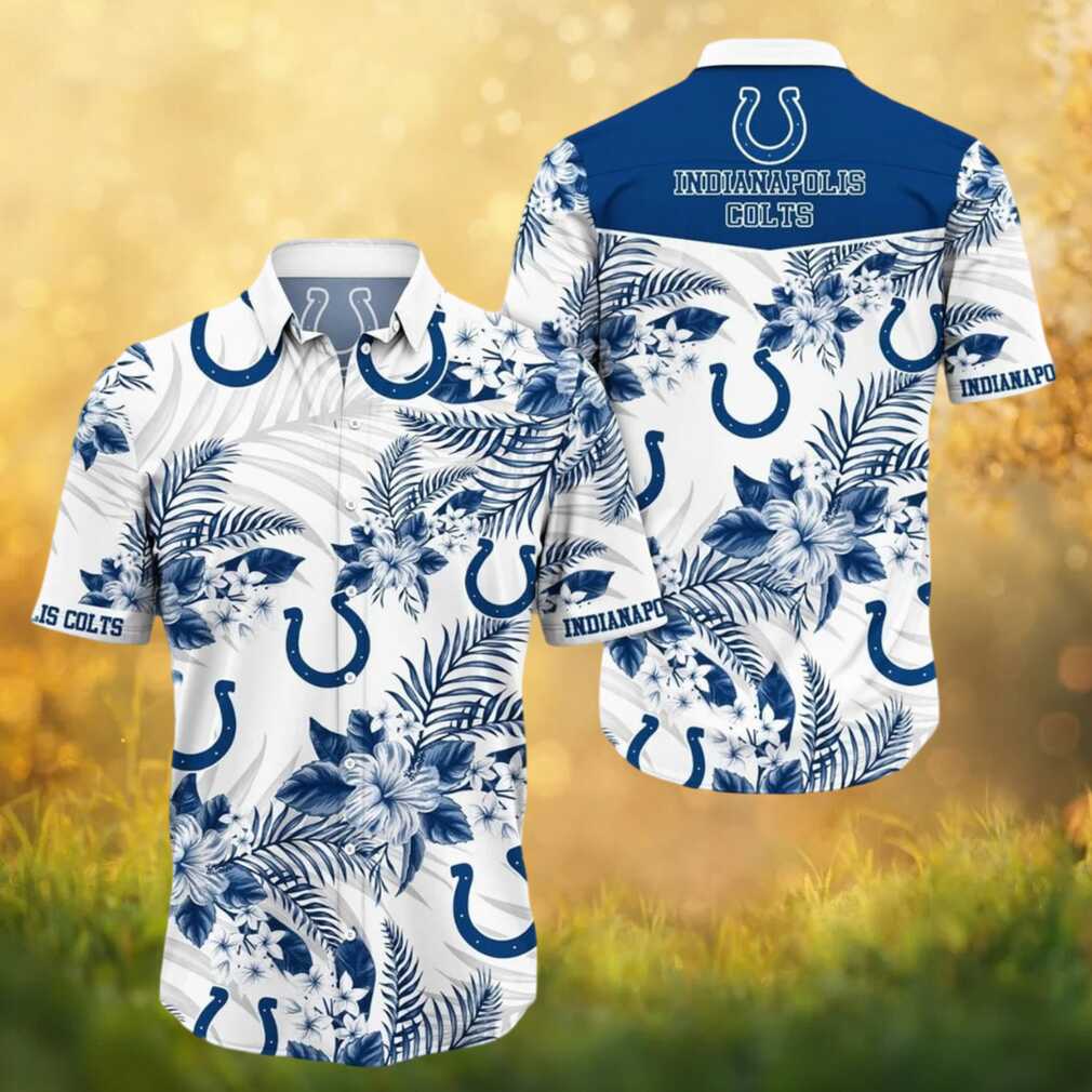 Show your Indianapolis Colts pride in style with this vibrant NFL Hawaiian shirt. Blooming with Indianapolis Colts spirit! This all-over floral print features lush hibiscus flowers and tropical botanicals woven with team colors and logos. Crafted from lightweight, breathable fabric with a classic button-down camp collar, it’s as comfortable as it is stylish. Available in multiple sizes. Makes a great gift for any Indianapolis Colts fan!