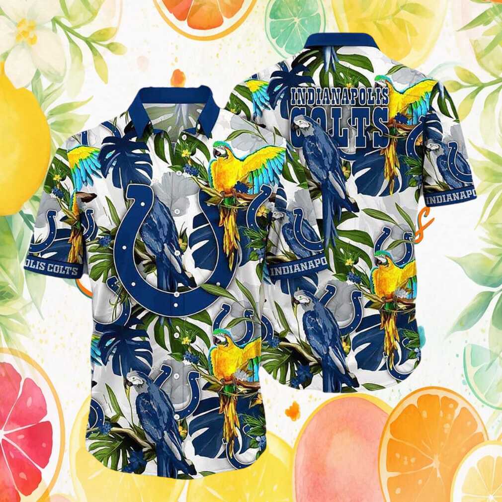 Show your Indianapolis Colts pride in style with this vibrant NFL Hawaiian shirt. Featuring an all-over tropical print with palm trees, lush foliage, and Indianapolis Colts colors and logos, this shirt is perfect for game days, beach outings, and summer gatherings. Crafted from lightweight, breathable fabric with a classic button-down camp collar, it’s as comfortable as it is stylish. Available in multiple sizes. Makes a great gift for any Indianapolis Colts fan!