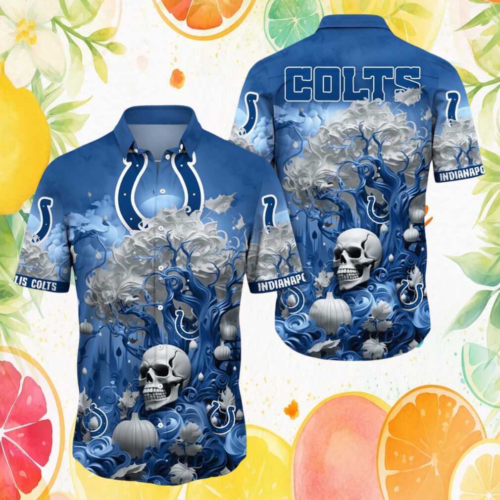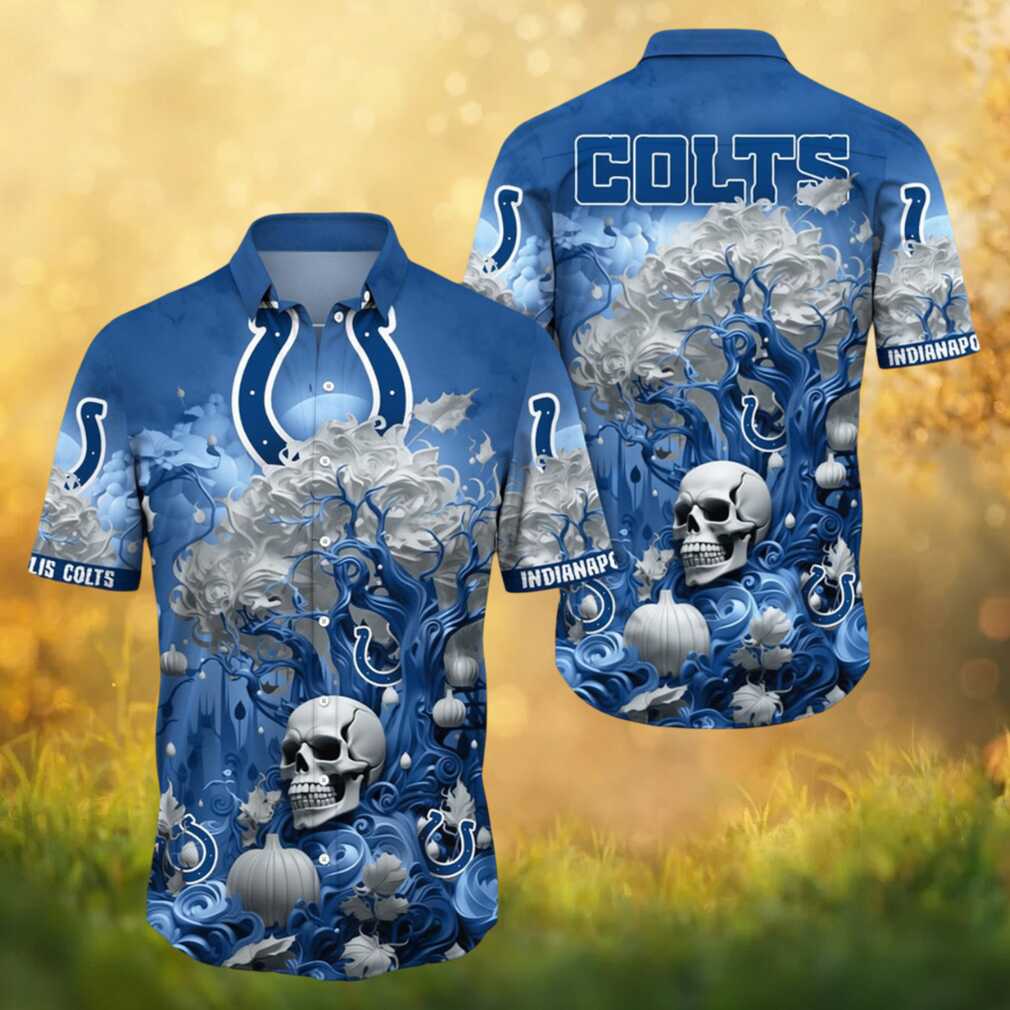 Indianapolis Colts Spooky Skull & Pumpkin Blue Gothic Hawaiian Shirt