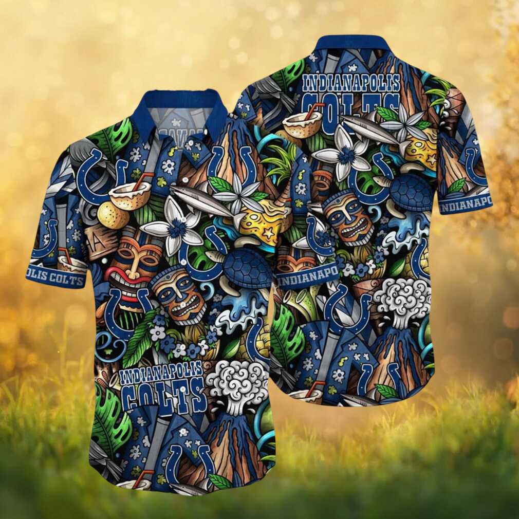 Show your Indianapolis Colts pride in style with this vibrant NFL Hawaiian shirt. Channel island vibes with this tiki and tribal-inspired Hawaiian shirt, blending Polynesian patterns with Indianapolis Colts colors for an authentic tropical look. Crafted from lightweight, breathable fabric with a classic button-down camp collar, it’s as comfortable as it is stylish. Available in multiple sizes. Makes a great gift for any Indianapolis Colts fan!