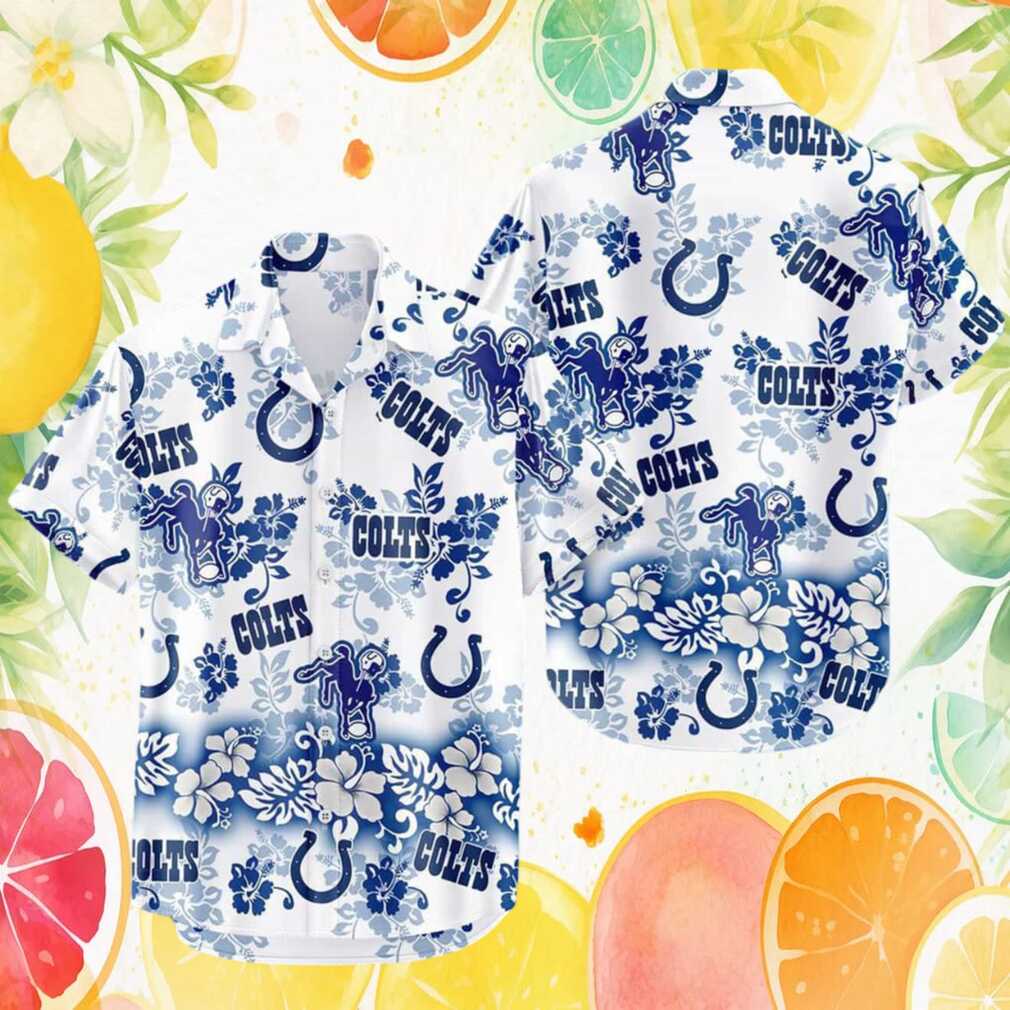 Indianapolis Colts White & Blue Hibiscus Flower Hawaiian Shirt