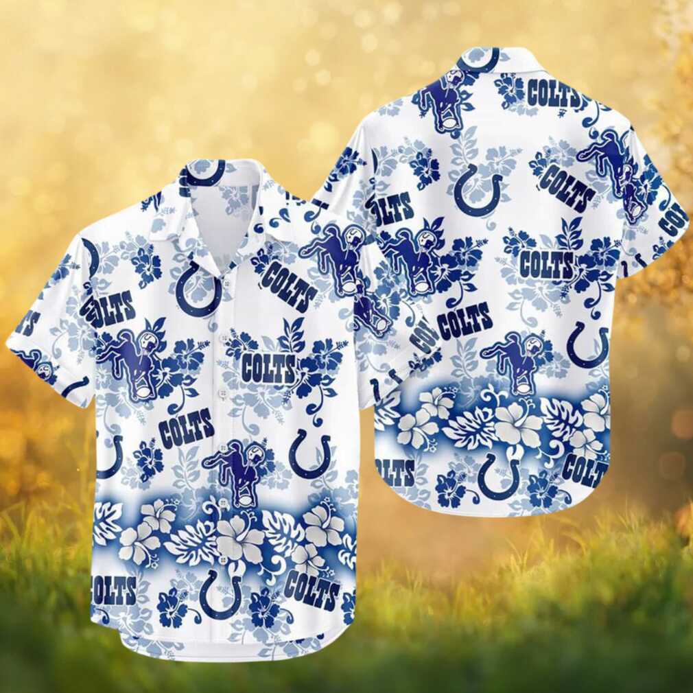 Show your Indianapolis Colts pride in style with this vibrant NFL Hawaiian shirt. Blooming with Indianapolis Colts spirit! This all-over floral print features lush hibiscus flowers and tropical botanicals woven with team colors and logos. Crafted from lightweight, breathable fabric with a classic button-down camp collar, it’s as comfortable as it is stylish. Available in multiple sizes. Makes a great gift for any Indianapolis Colts fan!