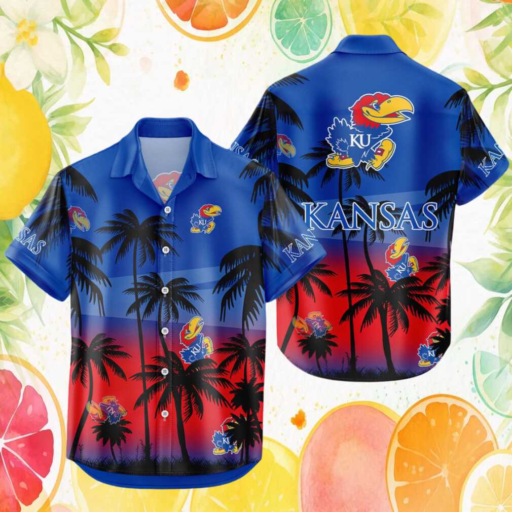 Kansas Jayhawks NCAA Tropical Sunset Palm Tree Blue Hawaiian Shirt