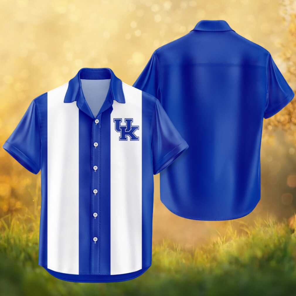 Kentucky Wildcats NCAA Blue and White Vertical Stripe Bowling Style Hawaiian Shirt