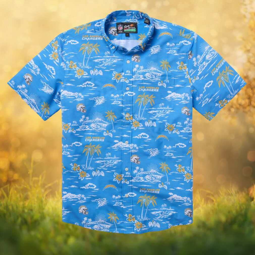 Rep your team in style with this officially licensed Reyn Spooner Los Angeles Chargers Hawaiian shirt. Featuring a stunning scenic/stadium print in multi-color, this button-down shirt blends authentic Hawaiian craftsmanship with passionate NFL fan spirit. Crafted from premium spoiler cloth for a comfortable, relaxed fit perfect for game days, tailgates, vacations, or any casual occasion. A must-have for any die-hard fan.
