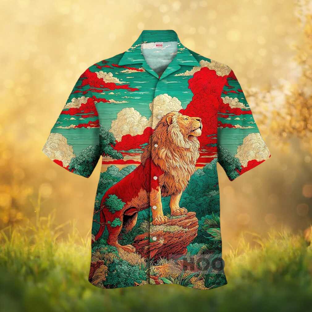 ()Majestic Lion King of the Jungle Red Clouds Art Hawaiian Shirt, Treat yourself or make a great gift for your loved ones