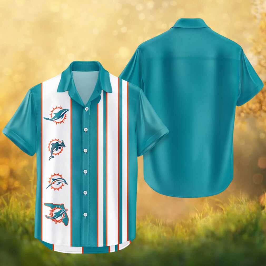 Miami Dolphins Aqua Vertical Stripe NFL Summer Hawaiian Shirt Short Sleeve Button Down