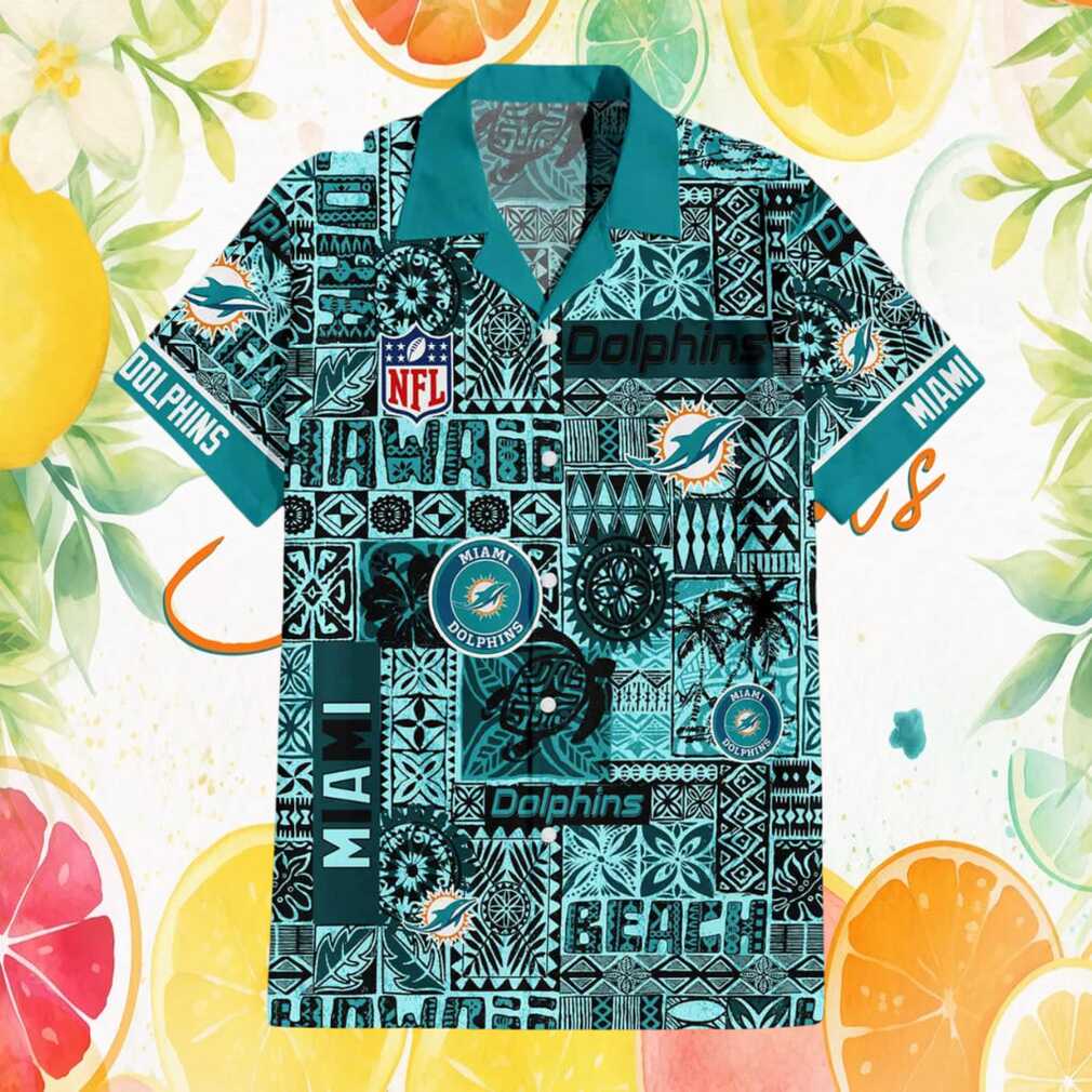 Miami Dolphins NFL Hawaiian Shirt Aqua Teal Tropical Polynesian Print Summer Top