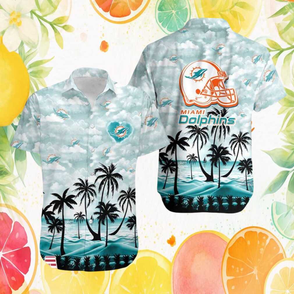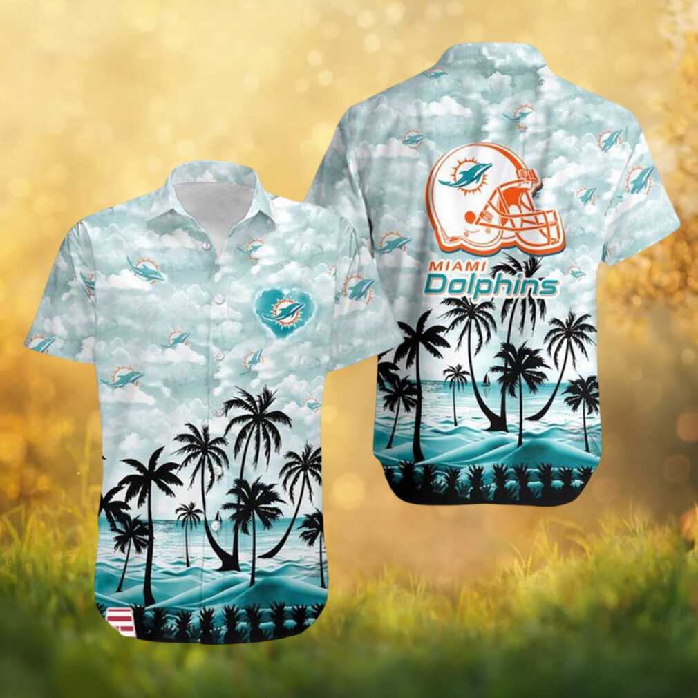 Miami Dolphins Tropical Beach Palm Tree Helmet Hawaiian Shirt