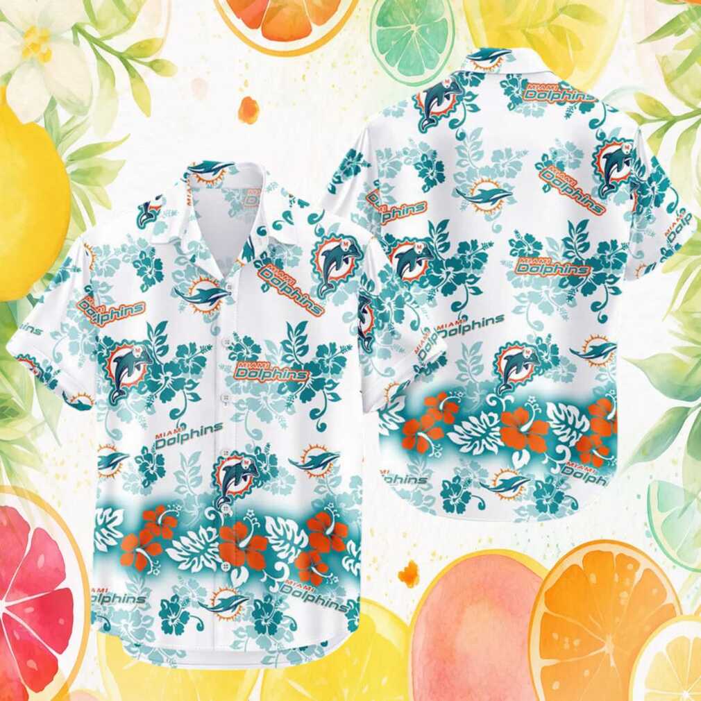 Miami Dolphins Tropical Hibiscus Floral White Aqua Hawaiian Shirt