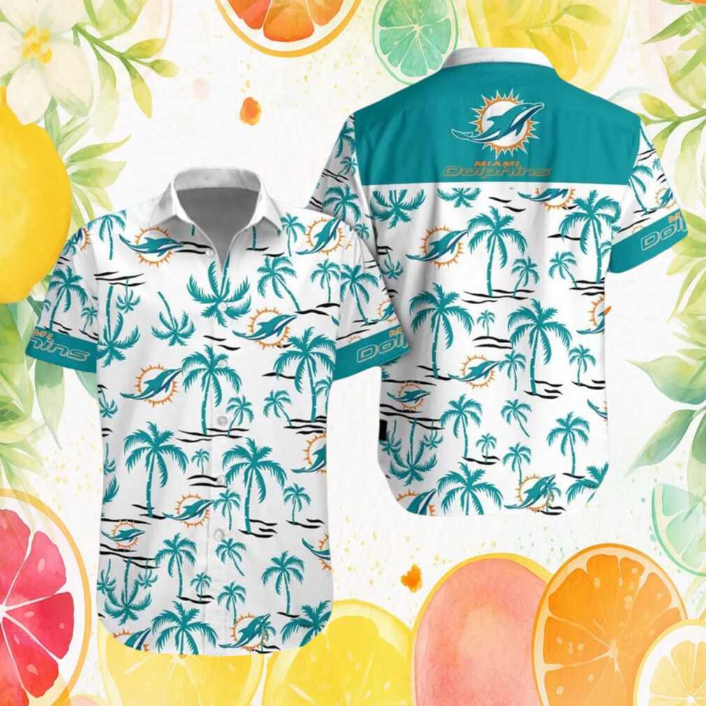 Miami Dolphins White Tropical Palm Tree Summer Beach Hawaiian Shirt